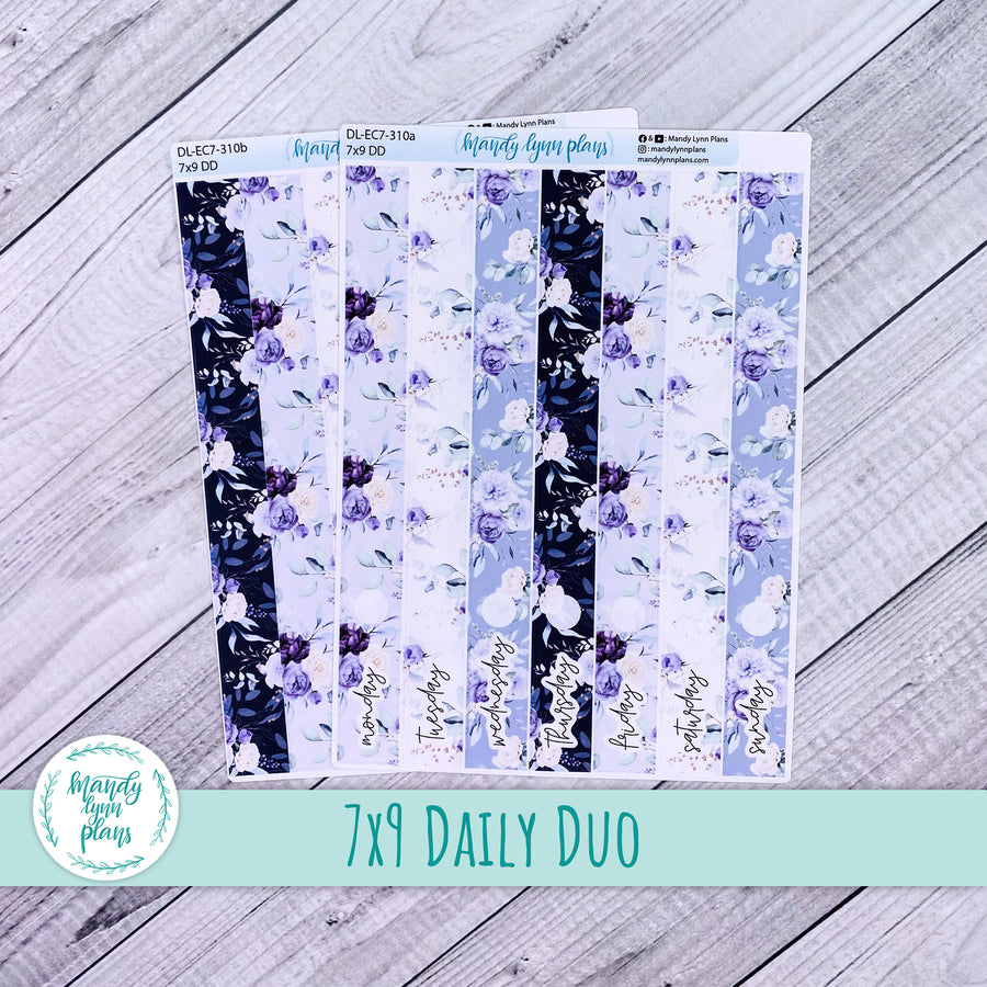 This kit includes 2 pages of stickers: 10 large washi strips and 10 skinny strips for the bottom of the page. It is designed for the 7x9 EC Daily Duo planner.