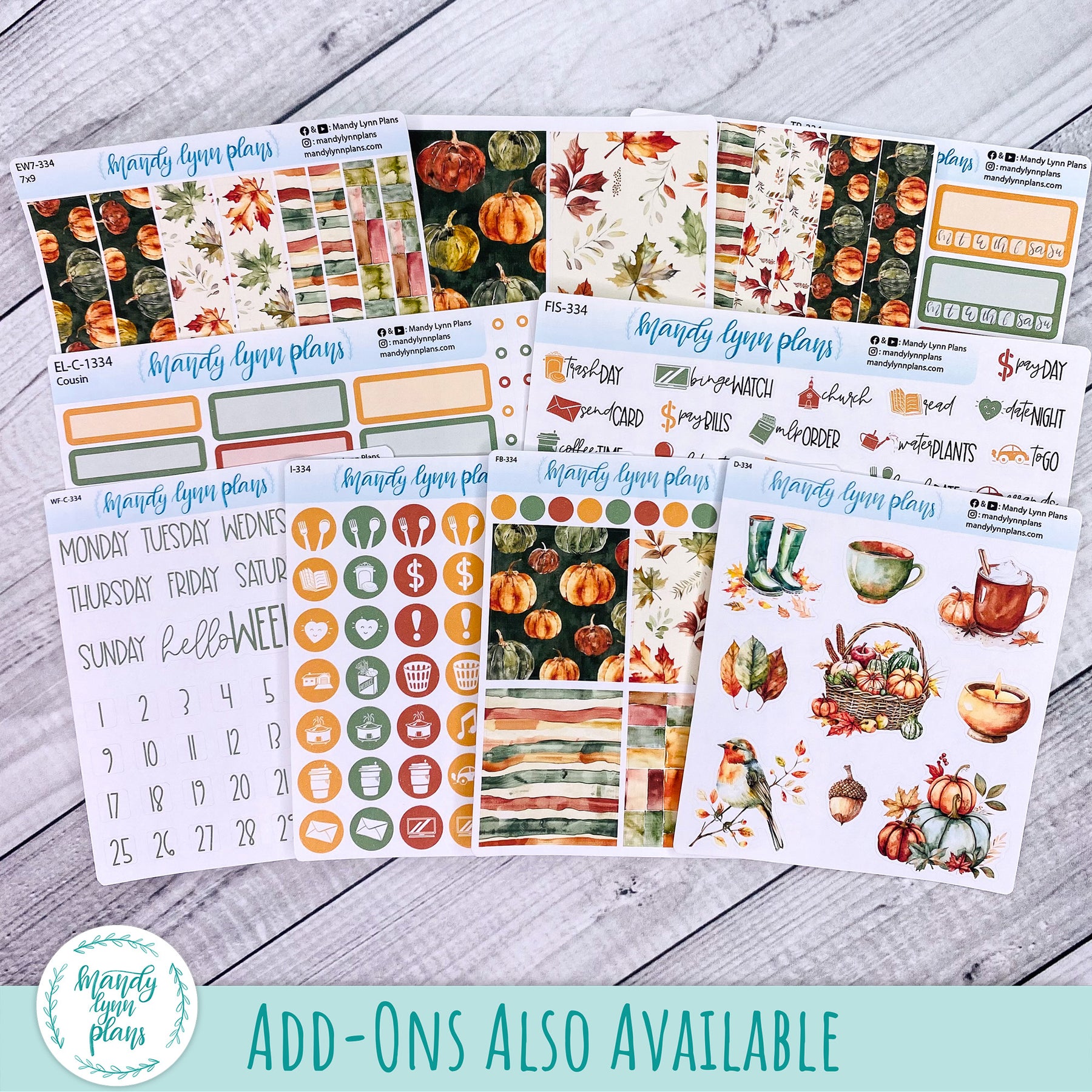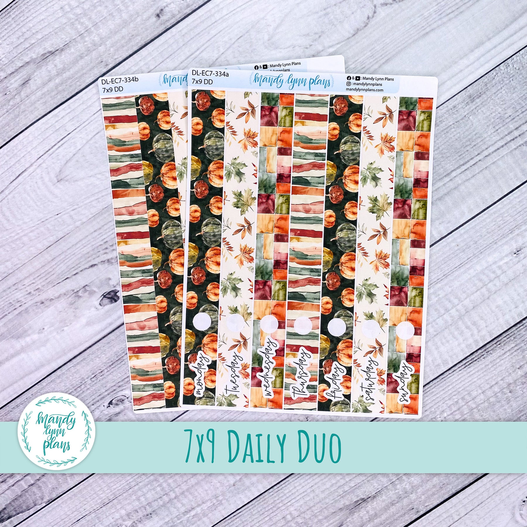 This kit includes 2 pages of stickers: 10 large washi strips and 10 skinny strips for the bottom of the page. It is designed for the 7x9 EC Daily Duo planner.
