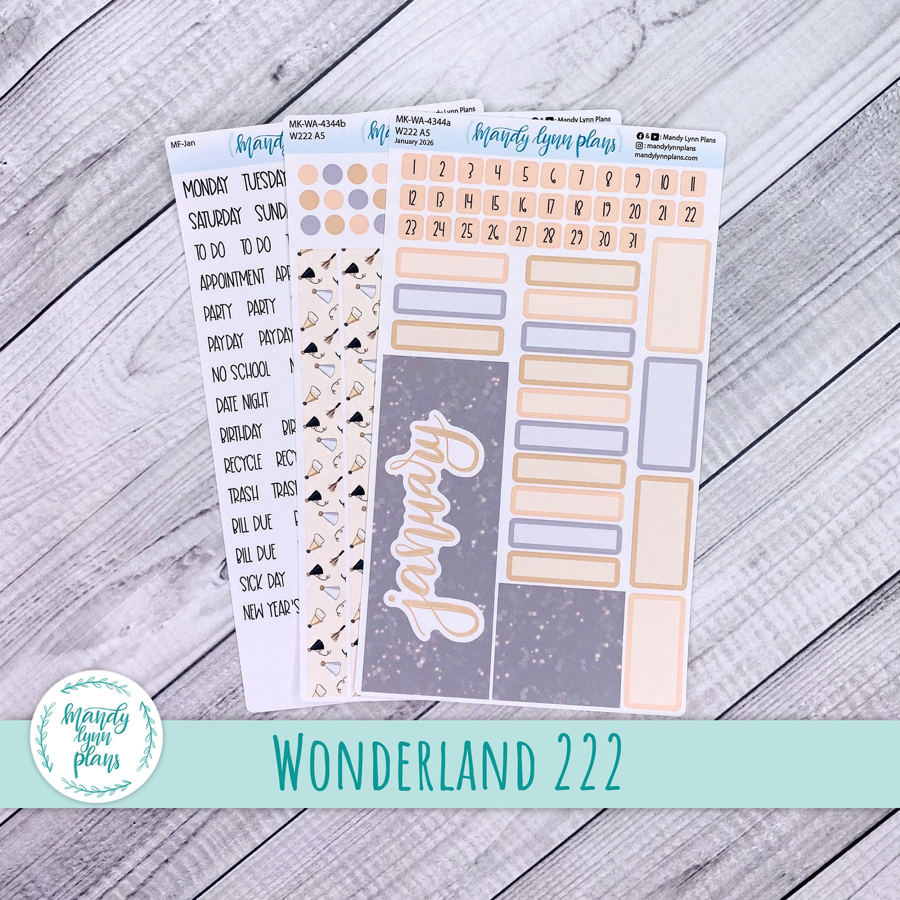 This listing is for one monthly kit designed for the 2025 Wonderland 222 planner. A5, B6, and A6 options are available. A6 full kits include scripts, but is still only a 2 page kit, and does not have a clear option.  Select either the month specific kit or the any month kit!
