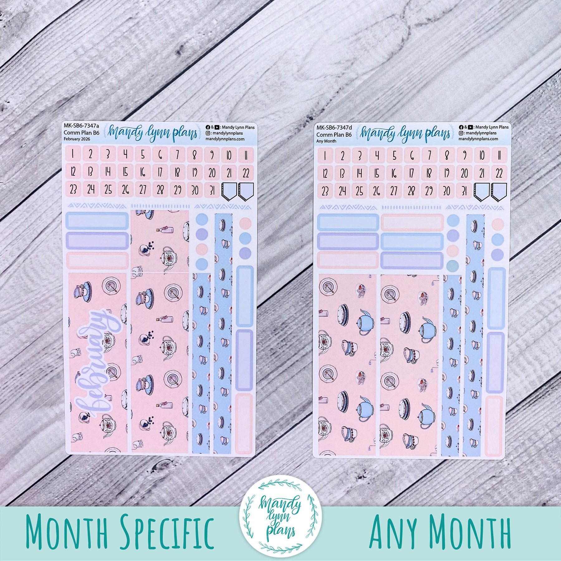 Monthly Kit || Sterling Ink A5, A5 Slim, B6, B6 Slim, N1, N2 Common Planner || Tea Party || 347