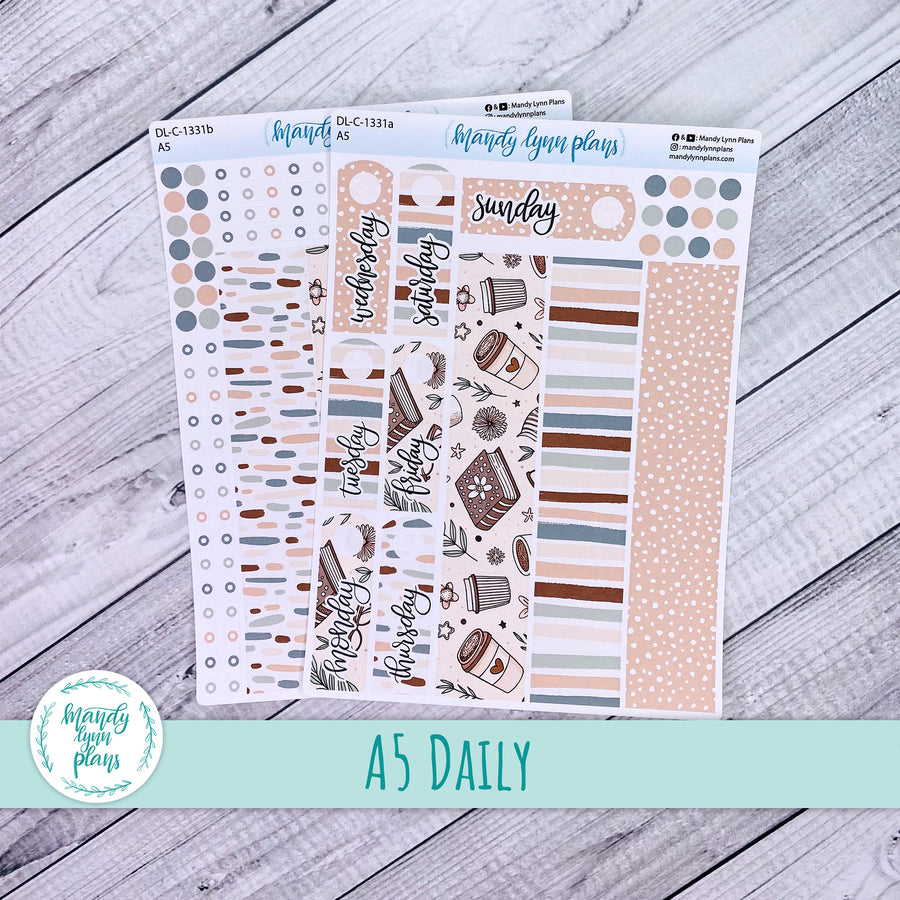 This kit includes 2 pages of stickers: 7 date covers and 7 large washi strips for the bottom of the page. Sheets also include dots and checklists.  This kit is designed for the Hobonichi Cousin, but can be used in the Wonderland 222, Common Planner, or other A5 daily planner.