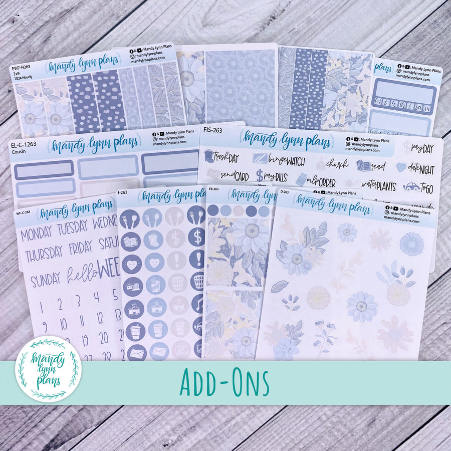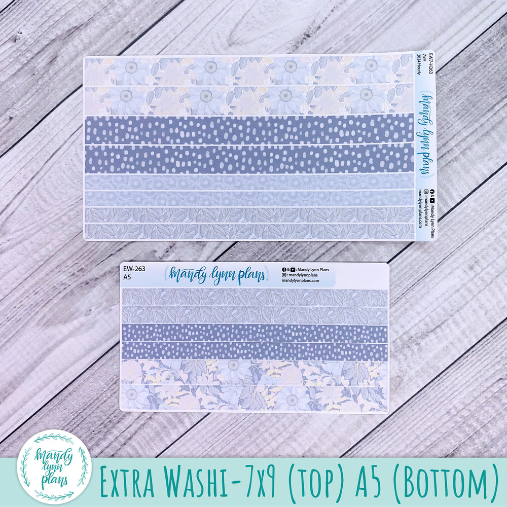 This kit includes 2 pages of stickers: 7 date covers and 7 large washi strips for the bottom of the page. Sheets also include dots and checklists.  This kit is designed for the Hobonichi Cousin, but can be used in the Wonderland 222, Common Planner, or other A5 daily planner.