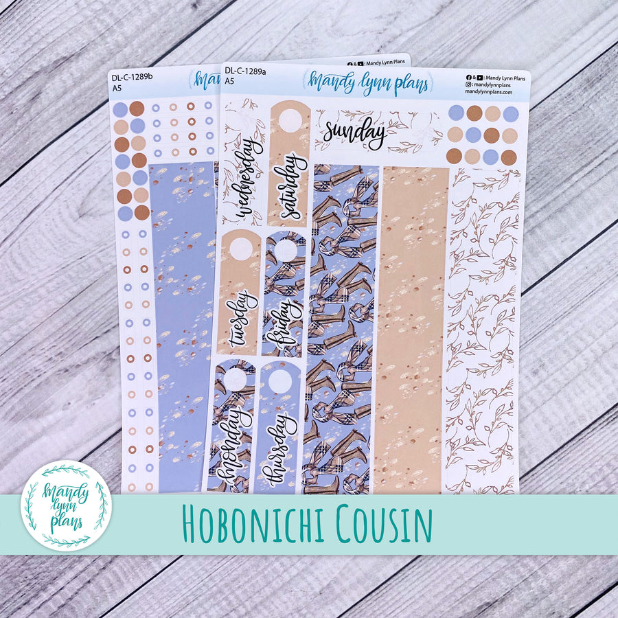 This kit includes 2 pages of stickers: 7 date covers and 7 large washi strips for the bottom of the page. Sheets also include dots and checklists.  This kit is designed for the Hobonichi Cousin, but can be used in the Wonderland 222, Common Planner, or other A5 daily planner.