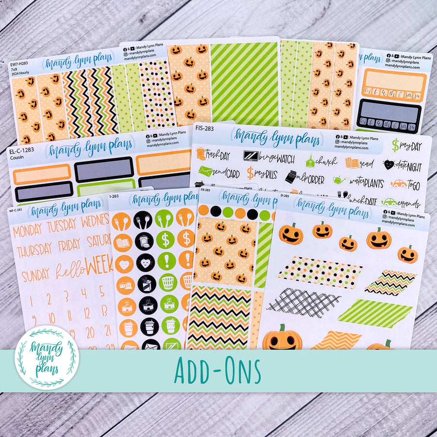 This kit includes 2 pages of stickers: 7 date covers and 7 large washi strips for the bottom of the page. Sheets also include dots and checklists.  This kit is designed for the Hobonichi Cousin, but can be used in the Wonderland 222, Common Planner, or other A5 daily planner.
