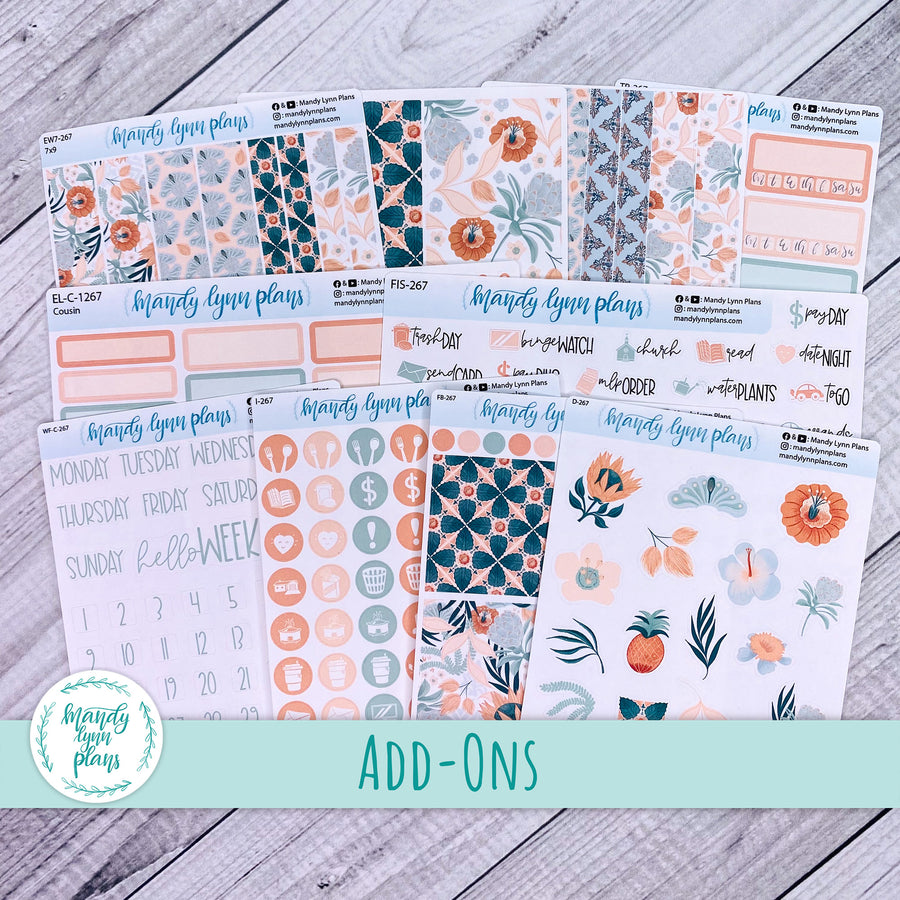 This kit includes 2 pages of stickers: 7 date covers and 7 large washi strips for the bottom of the page. Sheets also include dots and checklists.  This kit is designed for the Hobonichi Cousin, but can be used in the Wonderland 222, Common Planner, or other A5 daily planner.