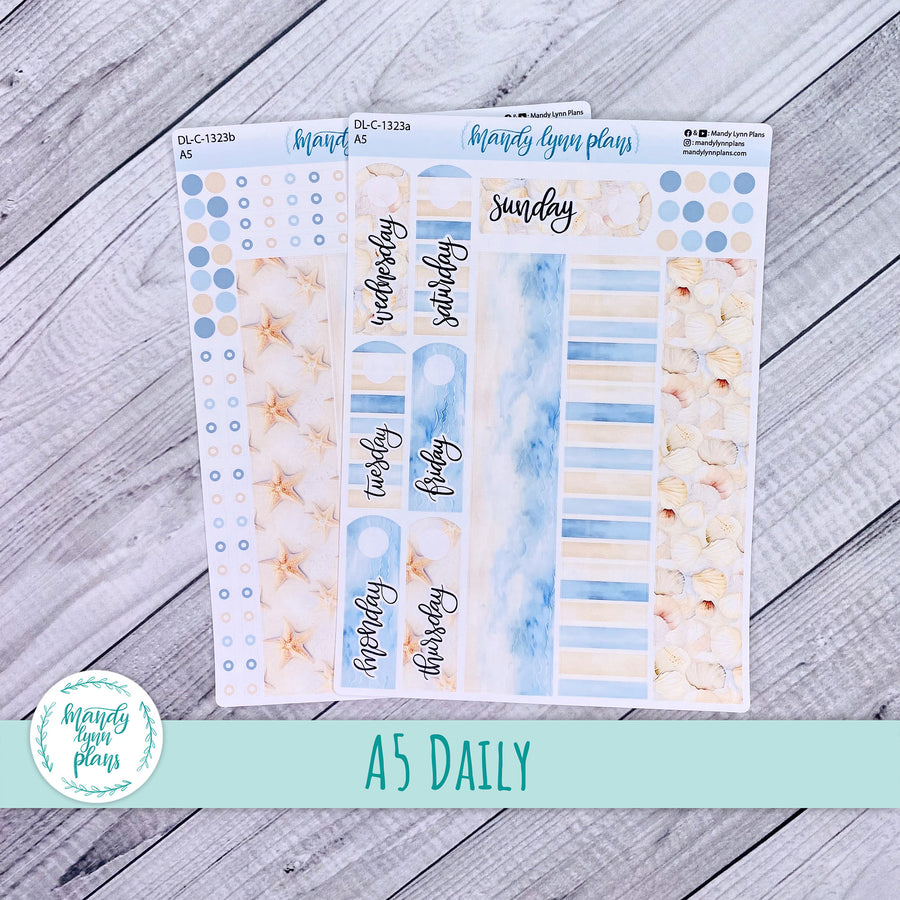 This kit includes 2 pages of stickers: 7 date covers and 7 large washi strips for the bottom of the page. Sheets also include dots and checklists.  This kit is designed for the Hobonichi Cousin, but can be used in the Wonderland 222, Common Planner, or other A5 daily planner.