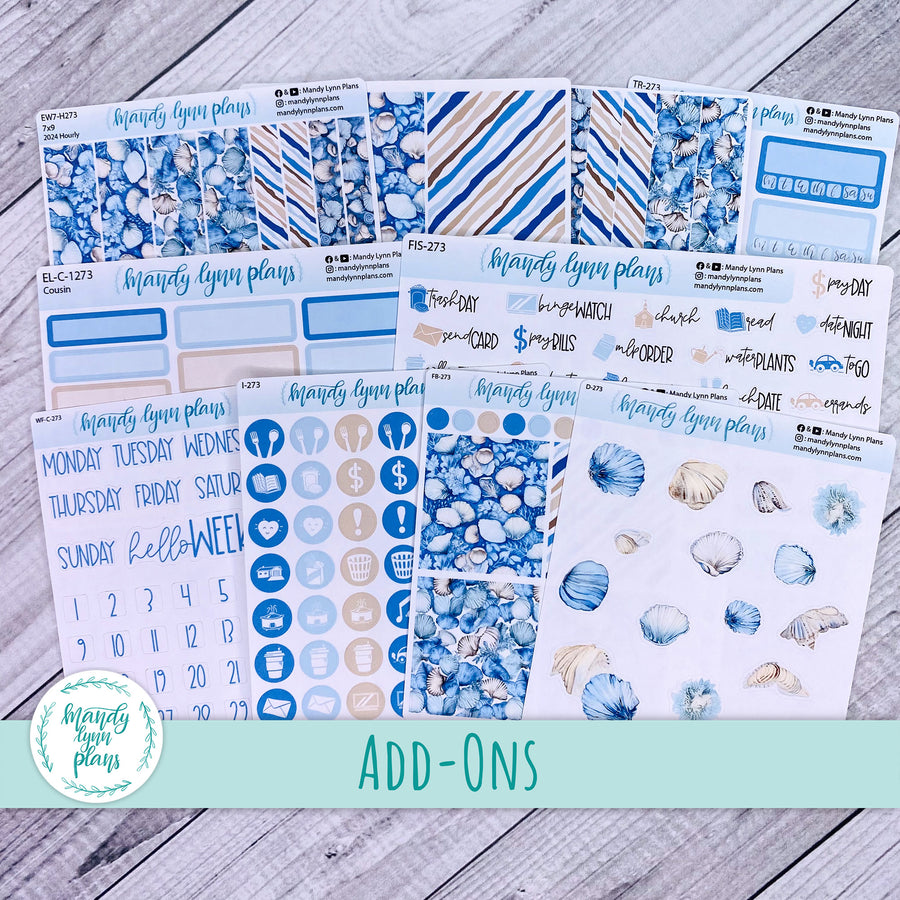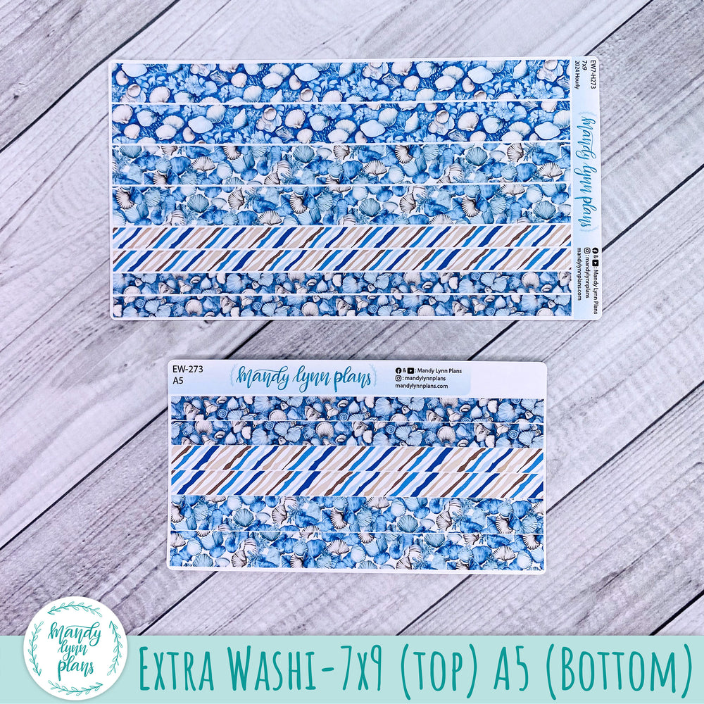 This kit includes 2 pages of stickers: 7 date covers and 7 large washi strips for the bottom of the page. Sheets also include dots and checklists.  This kit is designed for the Hobonichi Cousin, but can be used in the Wonderland 222, Common Planner, or other A5 daily planner.