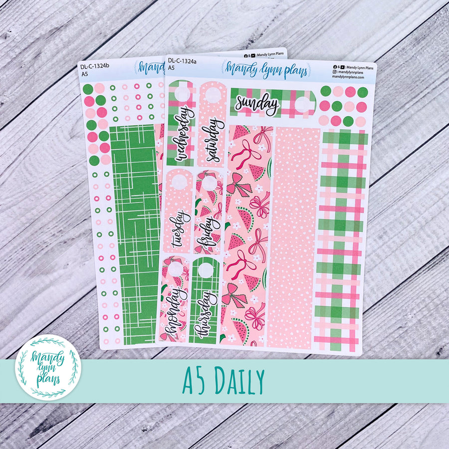 This kit includes 2 pages of stickers: 7 date covers and 7 large washi strips for the bottom of the page. Sheets also include dots and checklists.  This kit is designed for the Hobonichi Cousin, but can be used in the Wonderland 222, Common Planner, or other A5 daily planner.