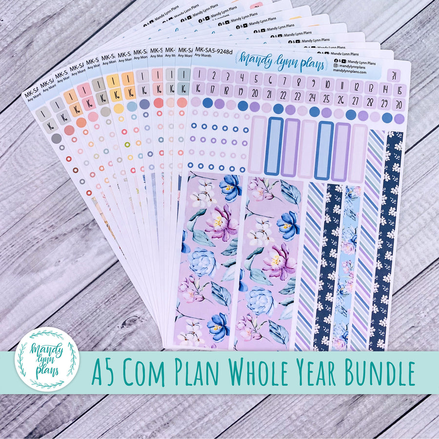 This listing is for a whole year bundle of 12 any month monthly kits designed for the A5 Common Planner. These monthly kit can be used any month. The washi strips are cut into boxes so that you can use them wherever you need to for any month.