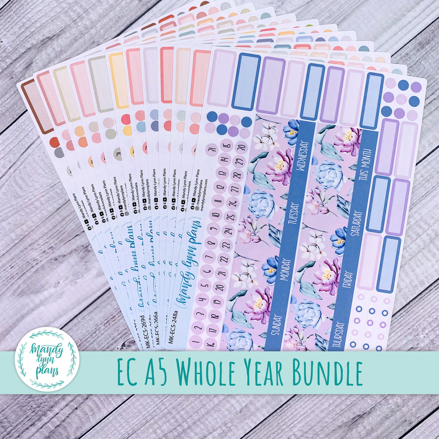 This listing is for a whole year bundle of 12 any month monthly kits designed for the Erin Condren A5 planner. These monthly kit can be used any month. The washi strips are cut into boxes so that you can use them wherever you need to for any month.