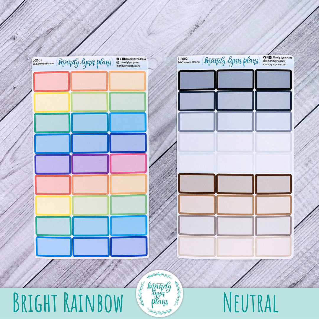 These labels are designed for use in the Sterling Ink B6 (& A5 Slim) Common Planner. They fit nicely in the two hour time slot if you are using the pre-printed timeline in the weekly view.