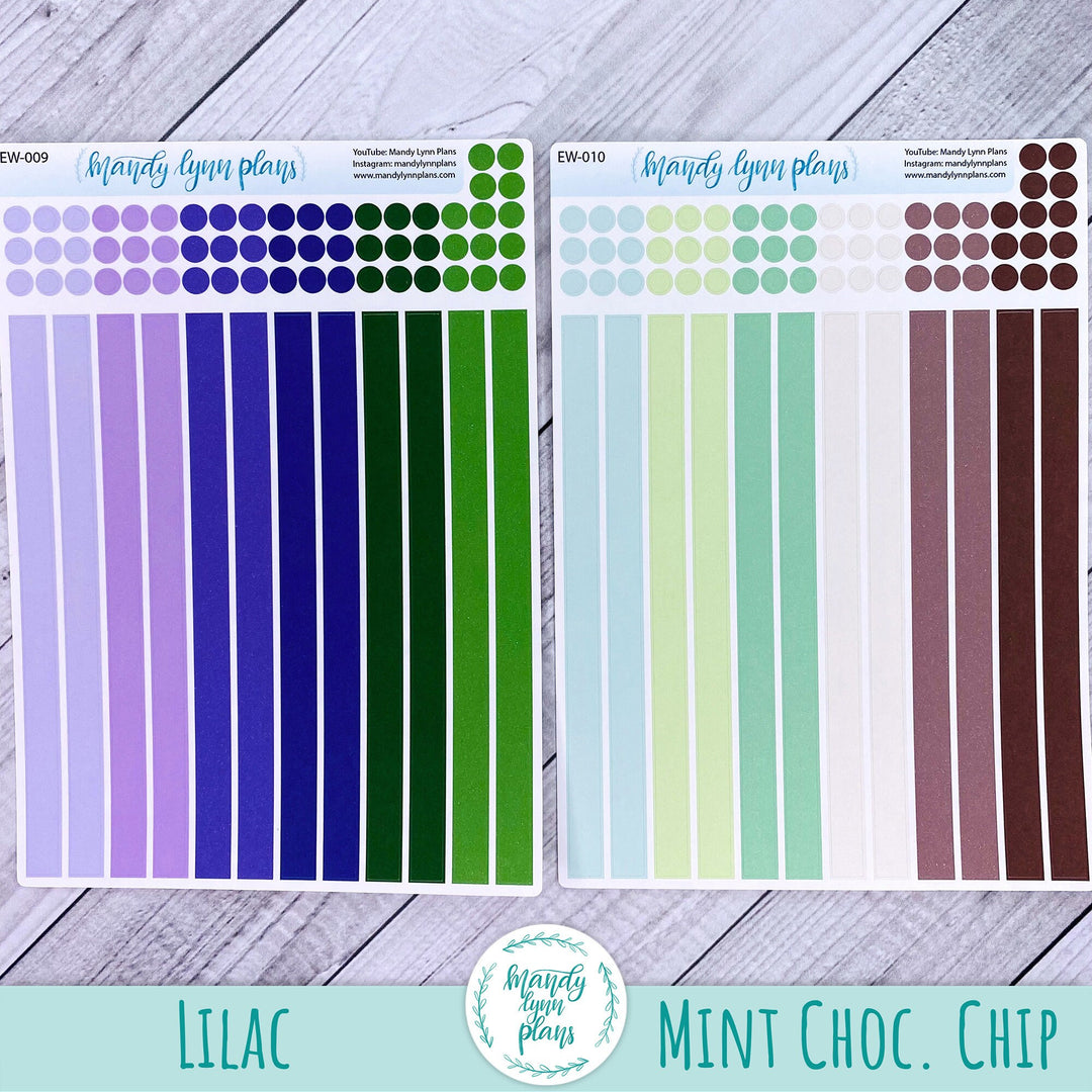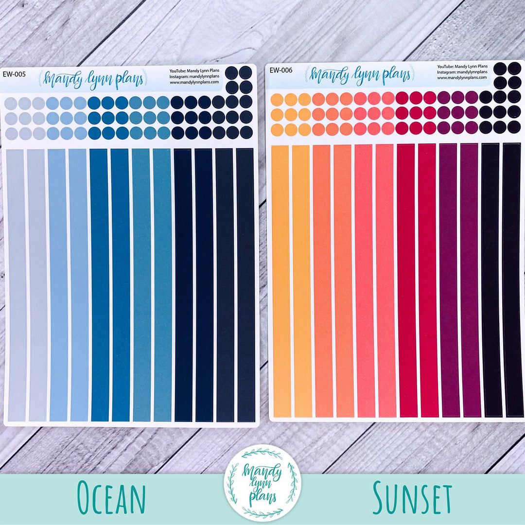 All sheets are 5x7 inches and are on either removable matte sticker paper or clear matte.