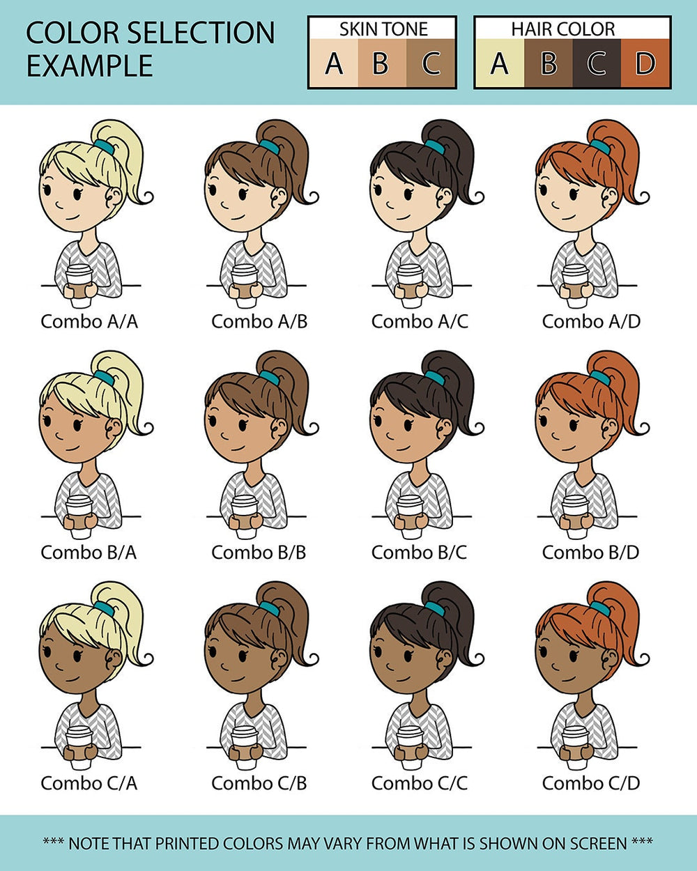 Mix and match the skin tone and hair color to find the perfect match for you.