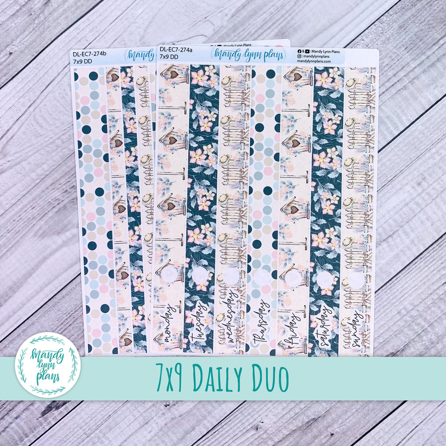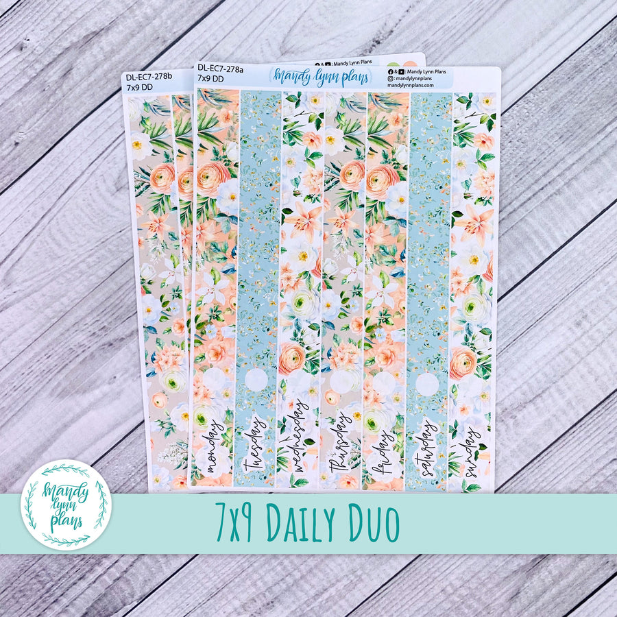 This kit includes 2 pages of stickers: 10 large washi strips and 10 skinny strips for the bottom of the page. It is designed for the 7x9 EC Daily Duo planner.