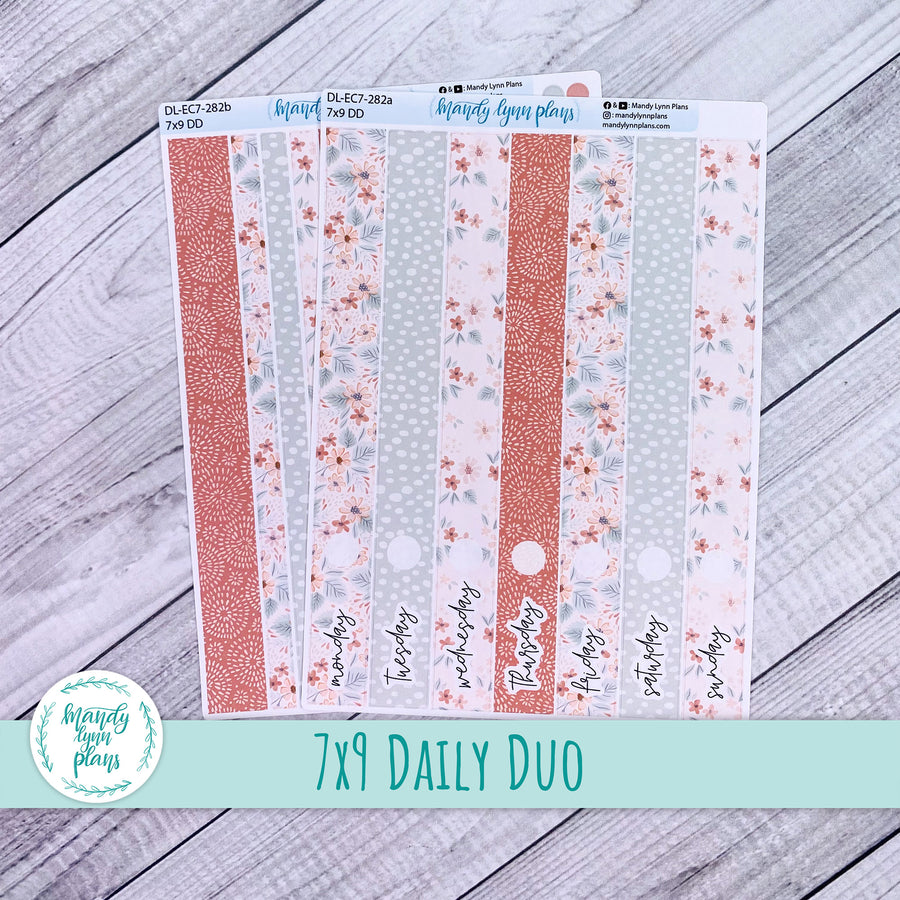 This kit includes 2 pages of stickers: 8 large washi strips and 8 skinny strips for the bottom of the page. It is designed for the 7x9 EC Daily Duo planner.