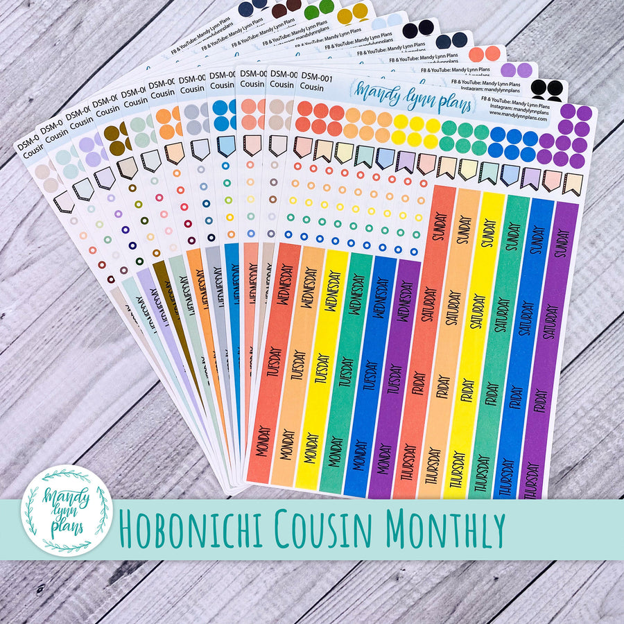 This listing is for one sheet of monthly day covers. They are designed for the Hobonichi Cousin and A5 Day Free planners, but can be used in any planner or bullet journal.
