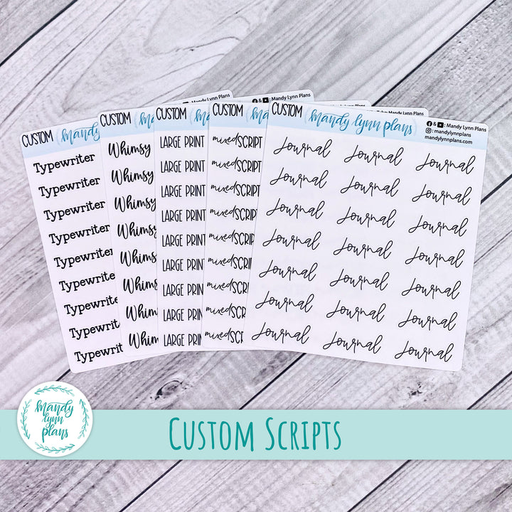 This listing is for a custom script sticker sheet designed for use in any planner or bullet journal! The print font I use only offers capital letters.