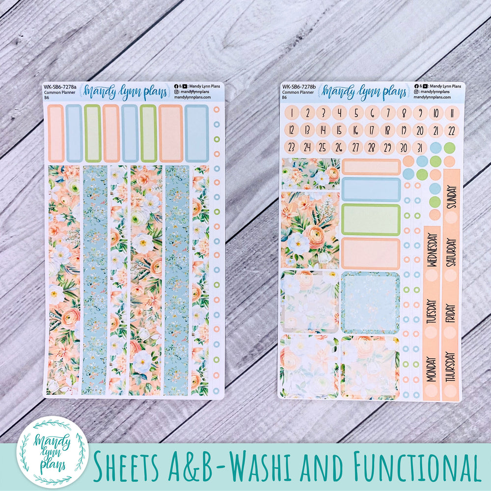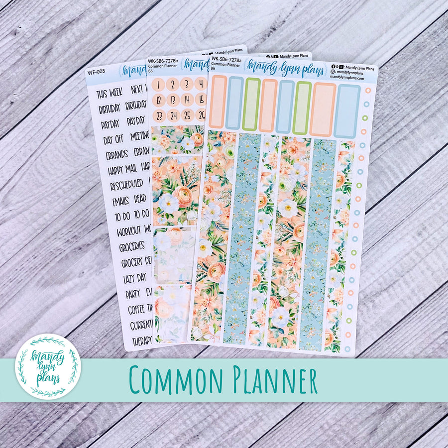A5, B6, N1 & N2 Common Planner Weekly Kit || White and Peach Floral || 278