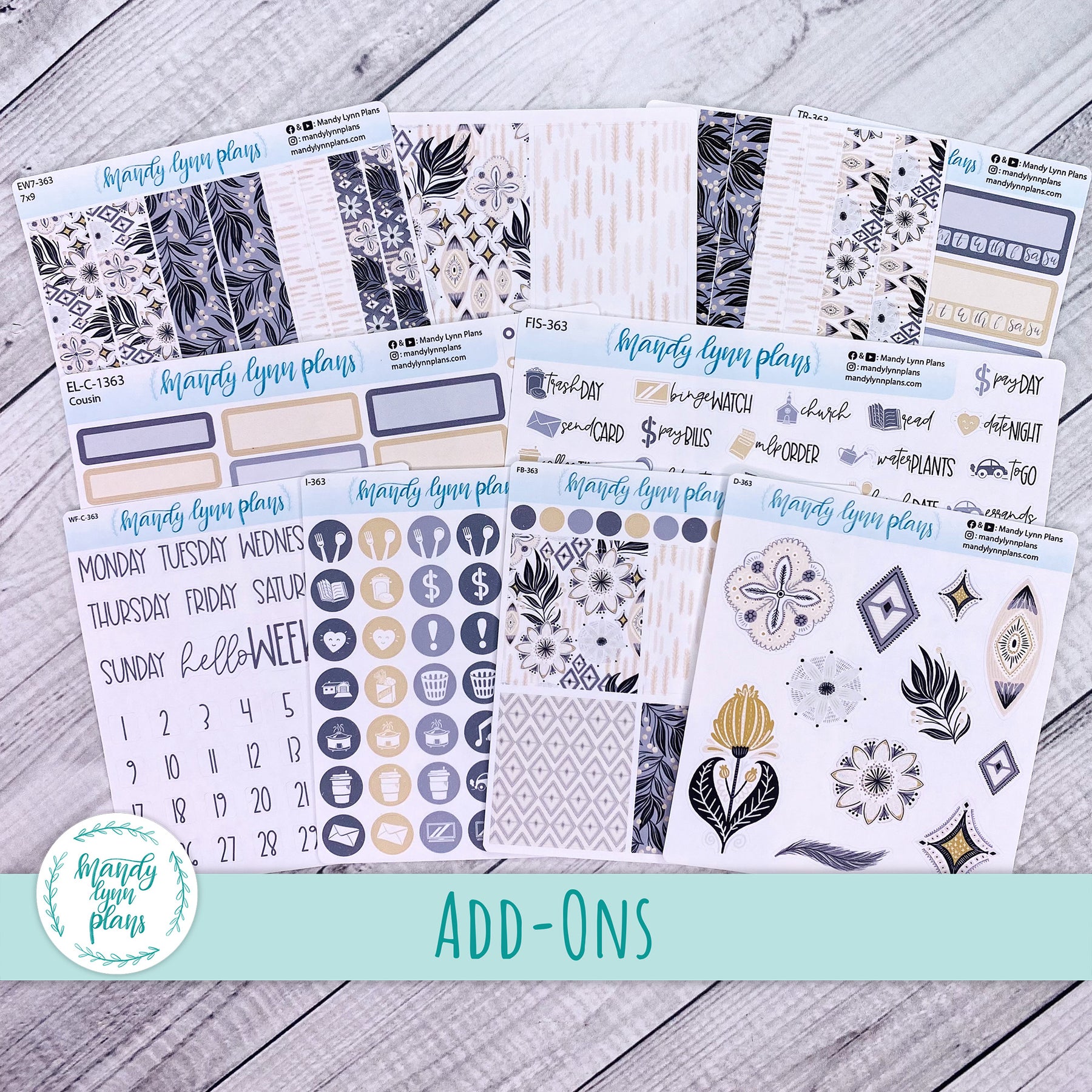 When selecting the add-on bundle, your planner choice will decide which washi strips, full boxes & labels are included.