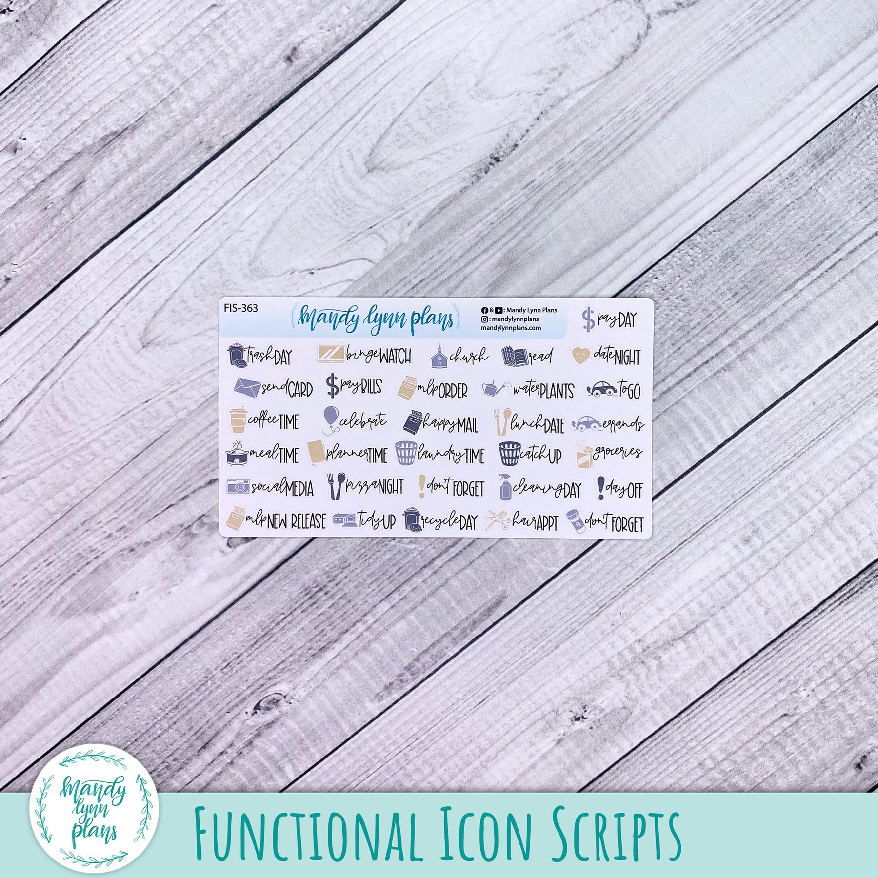 E - Functional Icon Scripts (white, clear, or washi matte)