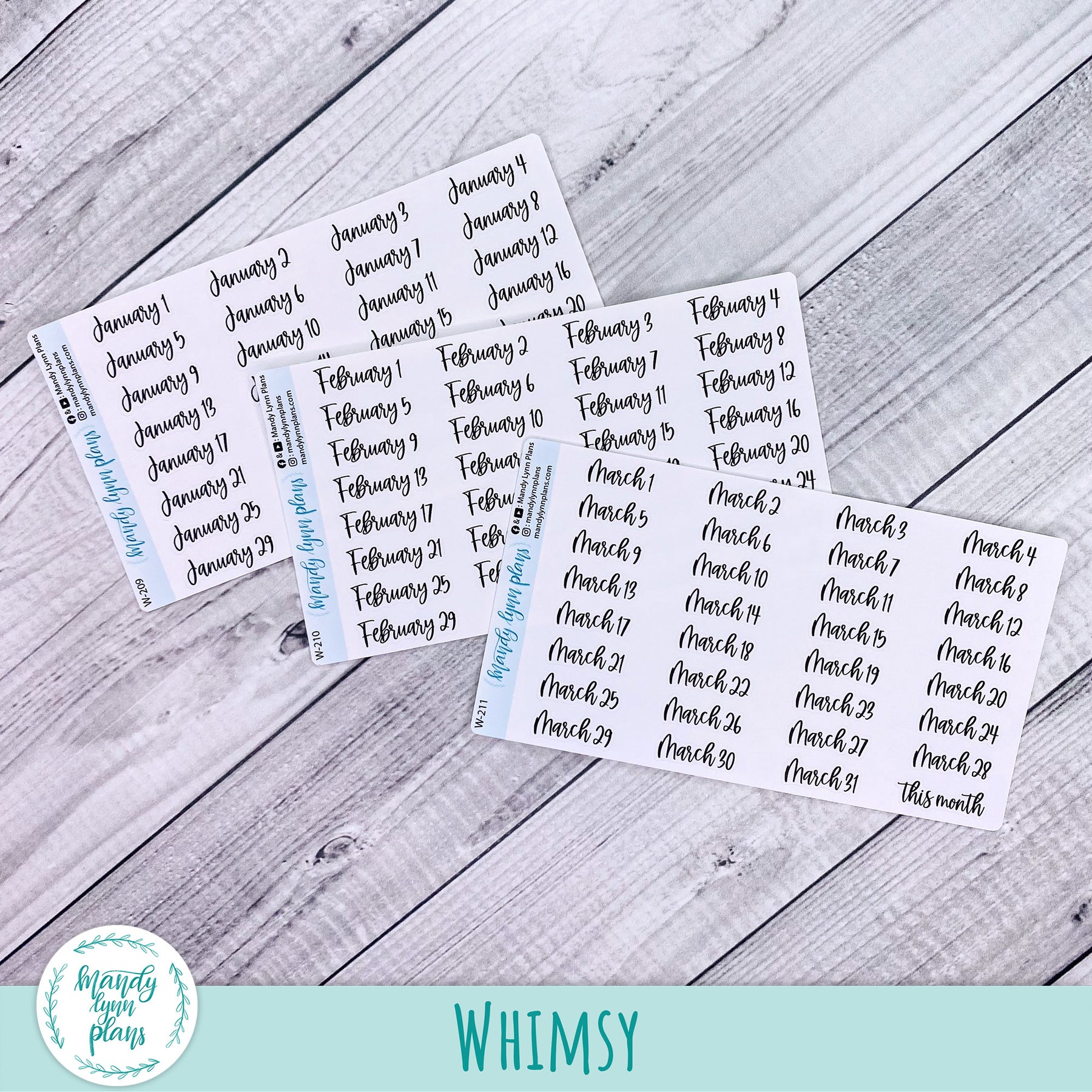 This listing is for one sheet of monthly date planner stickers! These can be used in any planner or bullet journal! Choose between whimsy or typewriter font.