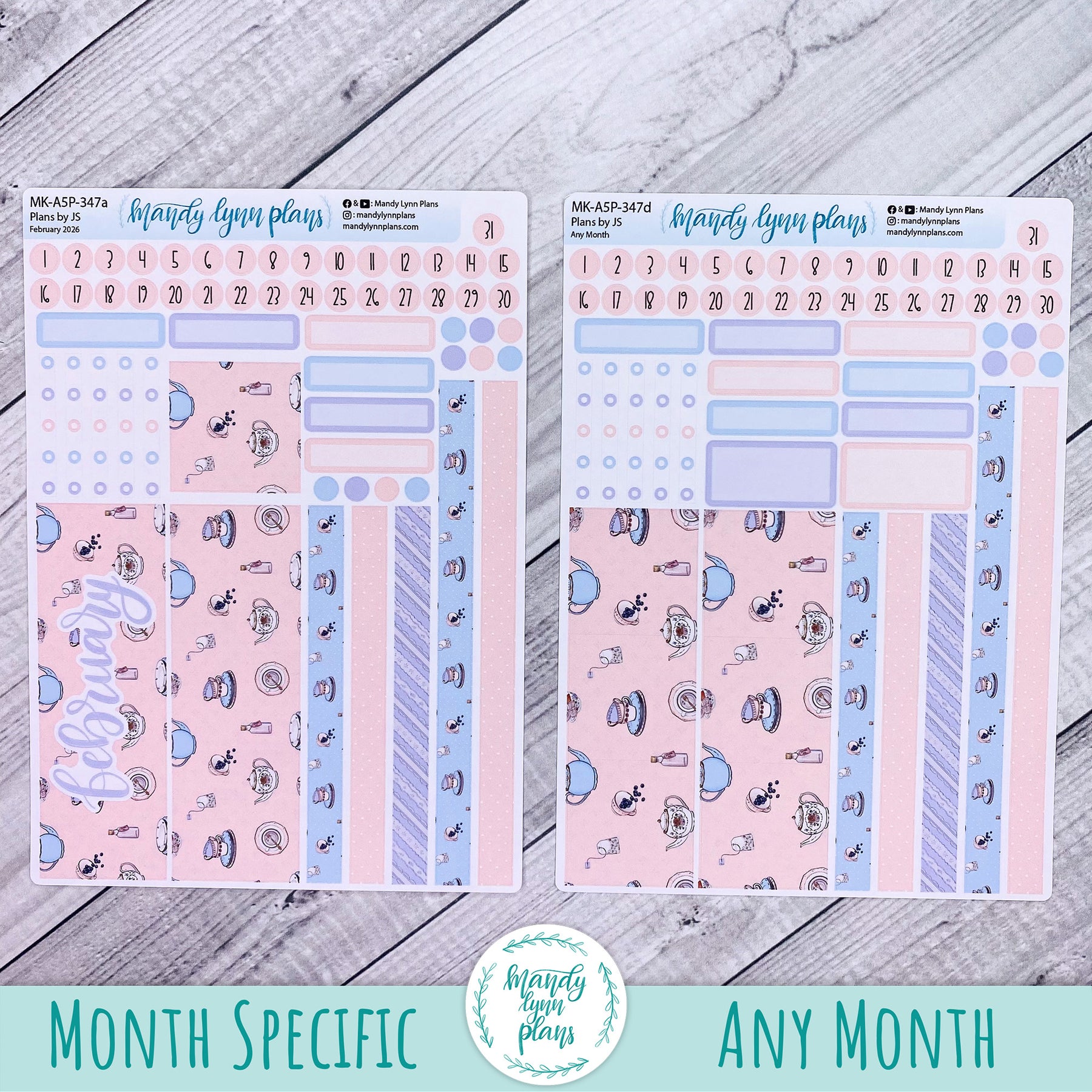Monthly Kit || A5, B6, A6 Plans by Just Scribble || Tea Party || 347