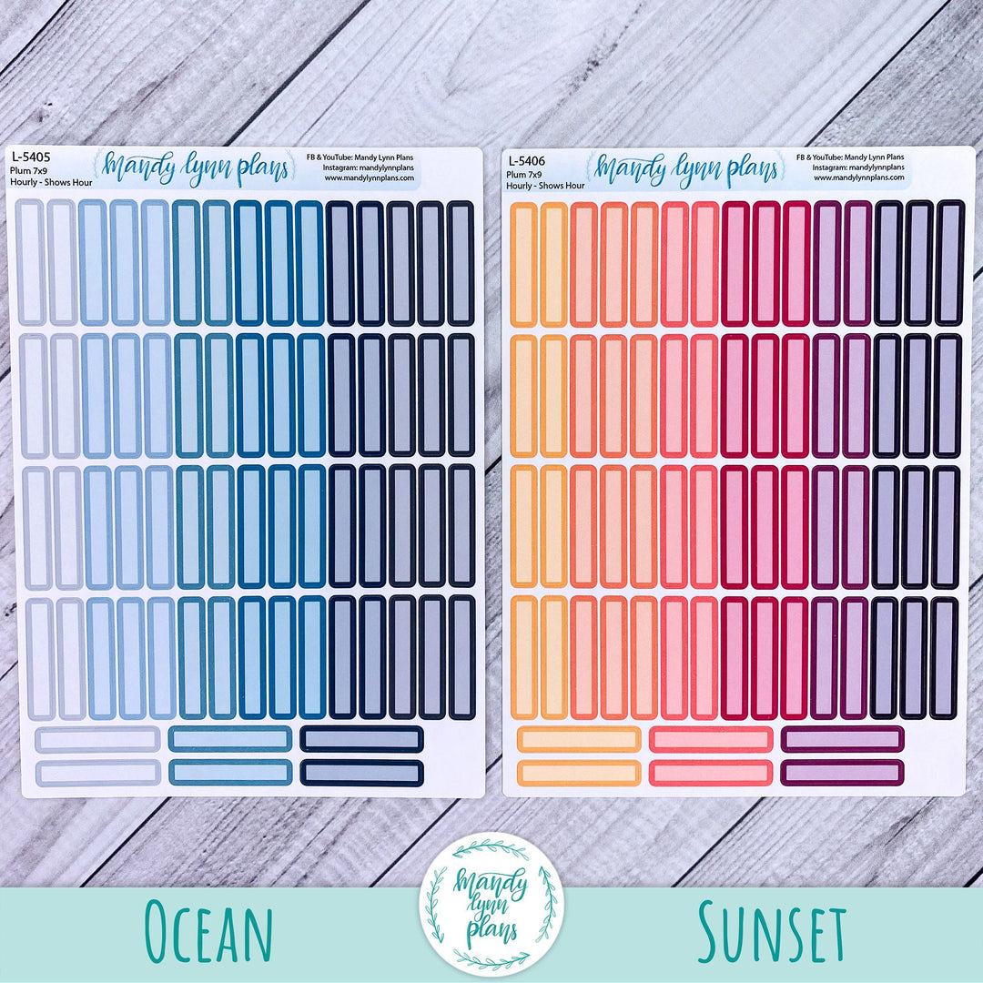 These labels are designed for use in the Plum Paper 7x9 Hourly Planner. They are shorter than the columns and SHOW the hour. They fit nicely in 1 line in this planner. 2, 3, and 4 lines are also available.