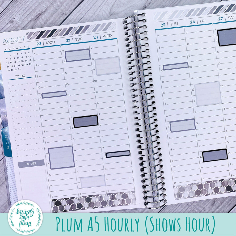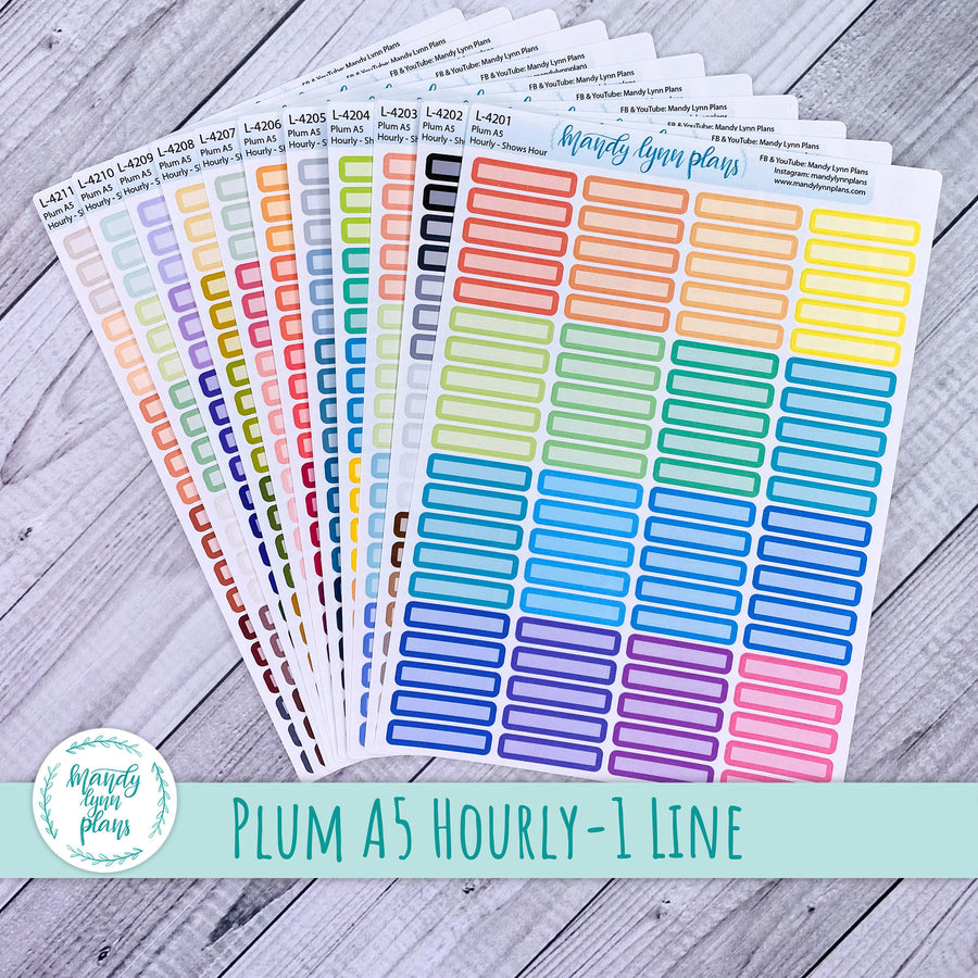 These labels are designed for use in the Plum Paper A5 Hourly Planner. They are shorter than the columns and SHOW the hour. They fit nicely in 1 line in this planner. 2, 3, and 4 lines are also available.
