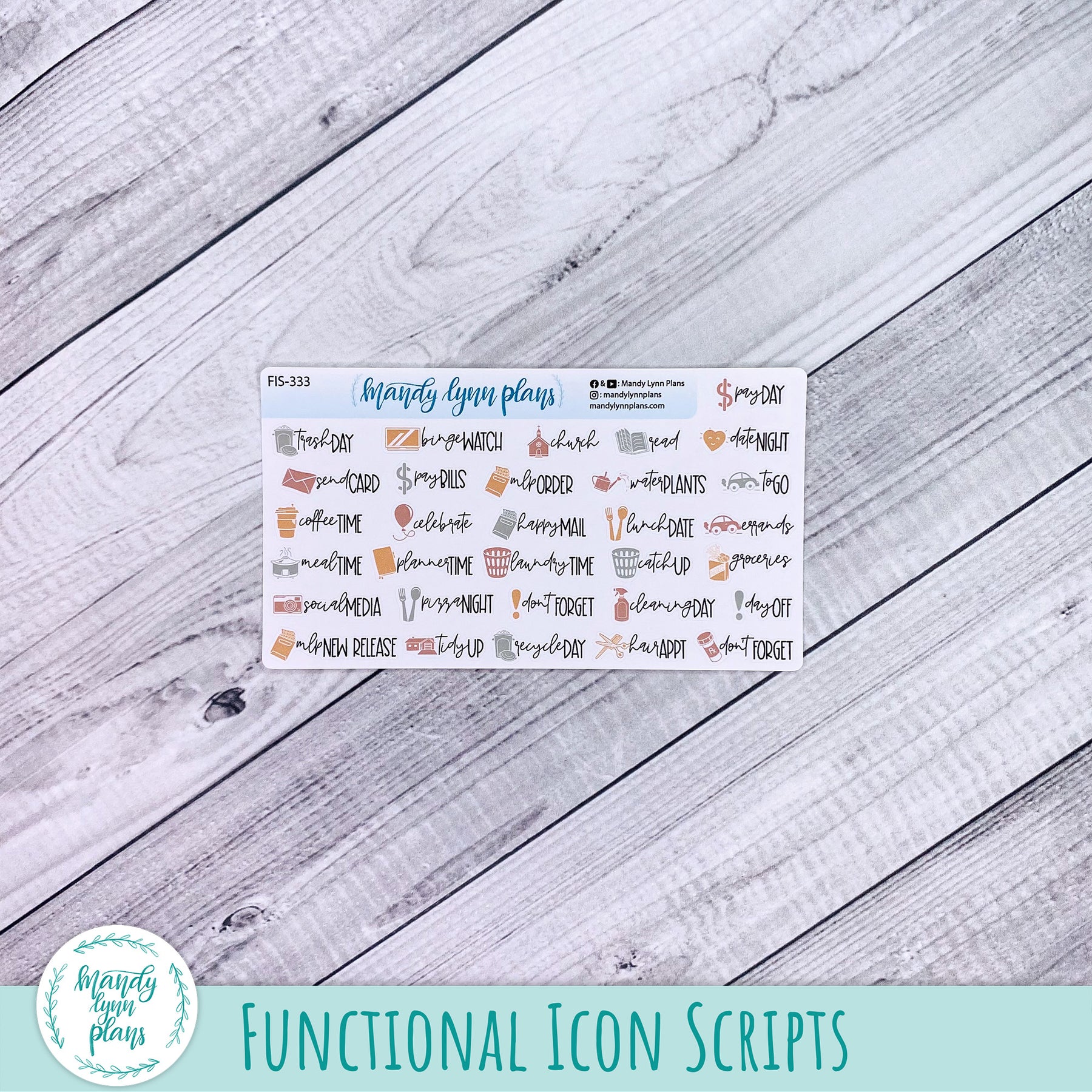 E - Functional Icon Scripts (white, clear, or washi matte)