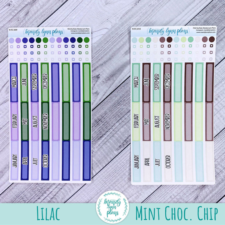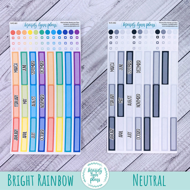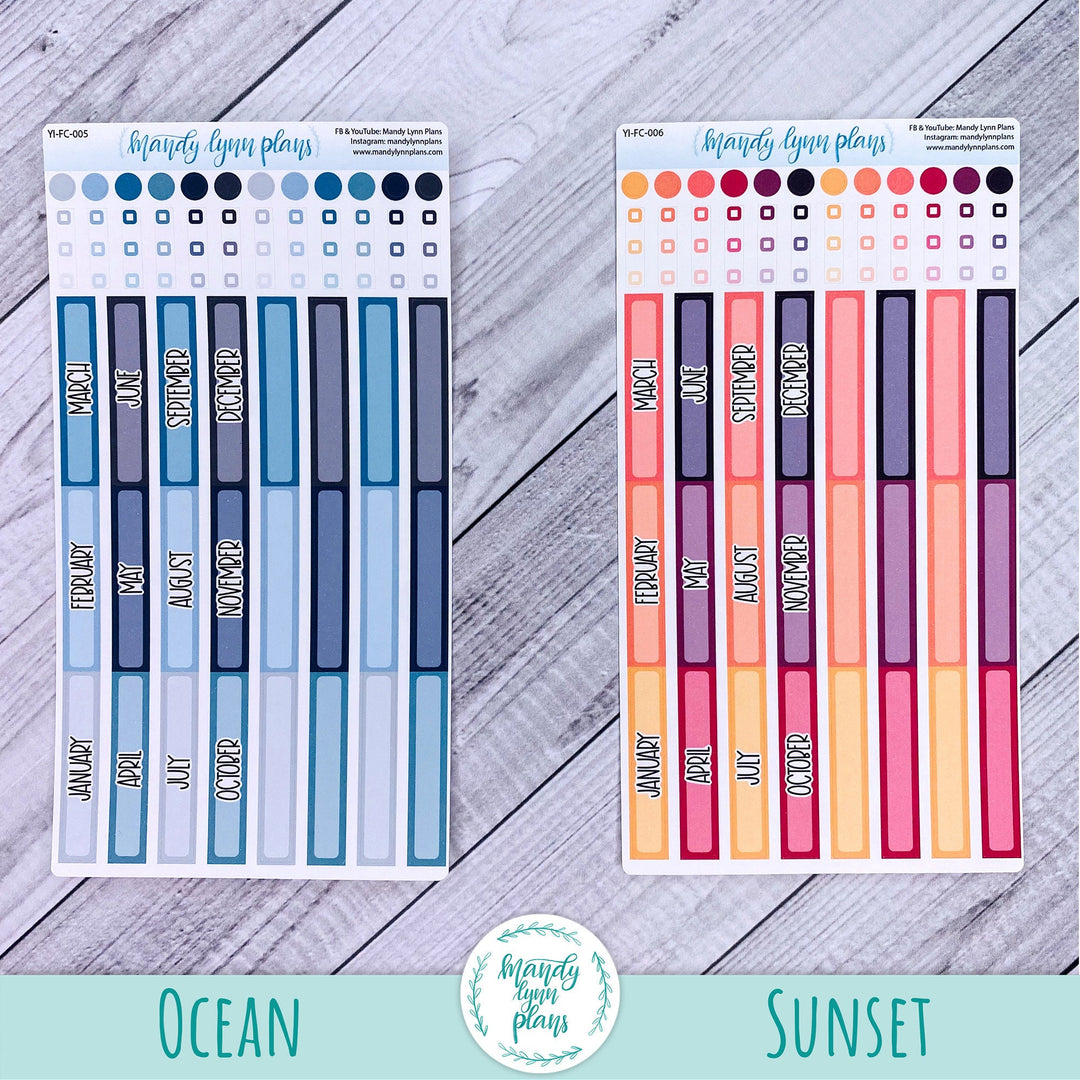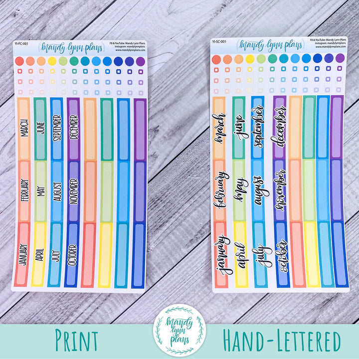 Each sheet contains washi strips with the months of the year and blank color-coordinating washi strips for the bottom of the page.