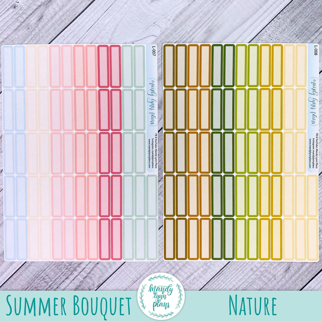 All sheets are 5x7 inches and are on removable matte sticker paper.