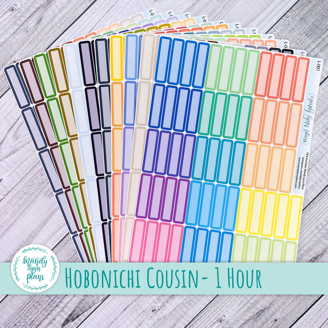 These labels are designed for use in the Hobonichi Cousin. They fit nicely in the one hour time slot if you are using the pre-printed timeline in the weekly view.