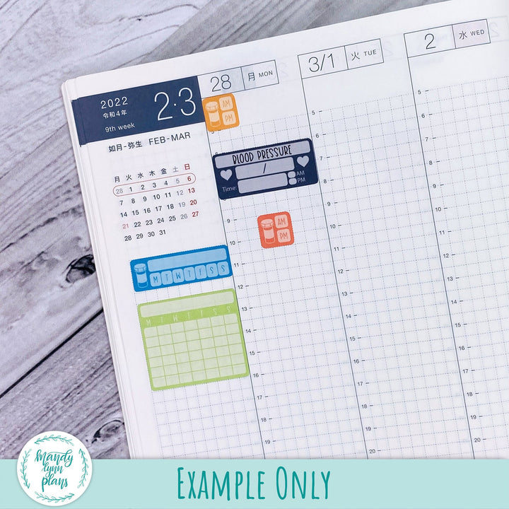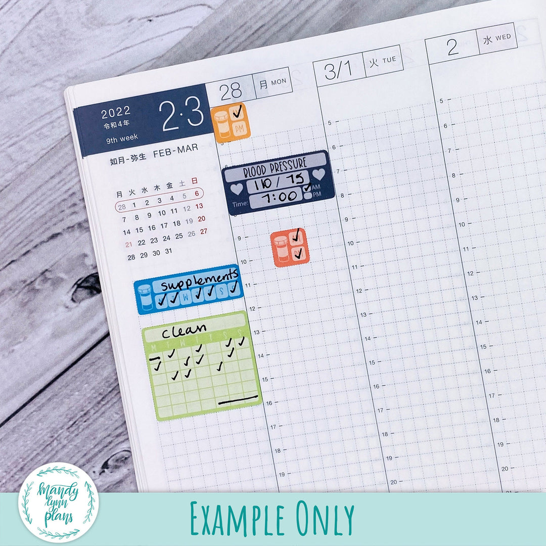 This listing is for one sheet of weekly pill trackers that are designed to fit in the Hobonichi Cousin, but can be used in any planner or bullet journal.