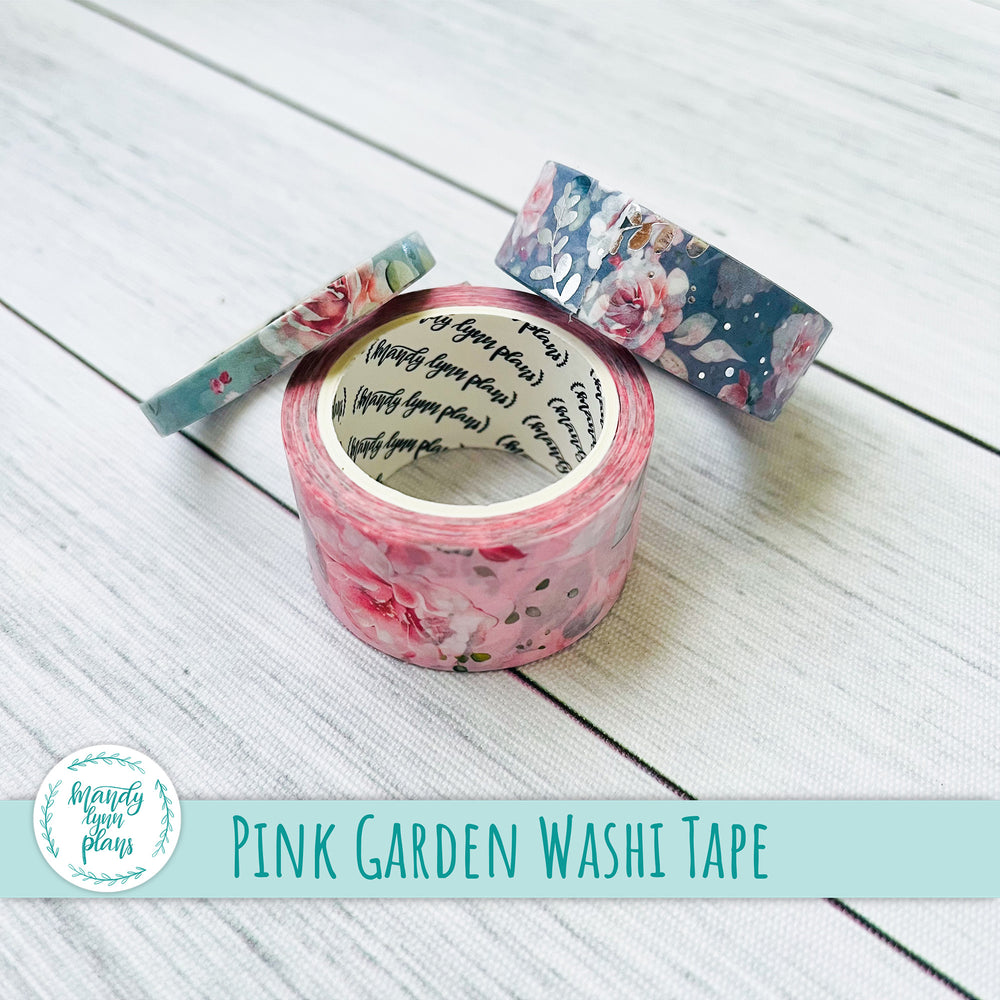 This listing is for a Set of THREE coordinating washi tape rolls that match the Pink Garden kits and add-ons we have in the shop. The washi tape is 25mm, 15mm, and 5 mm x 10m. The 15mm sized washi tape has silver foiling.