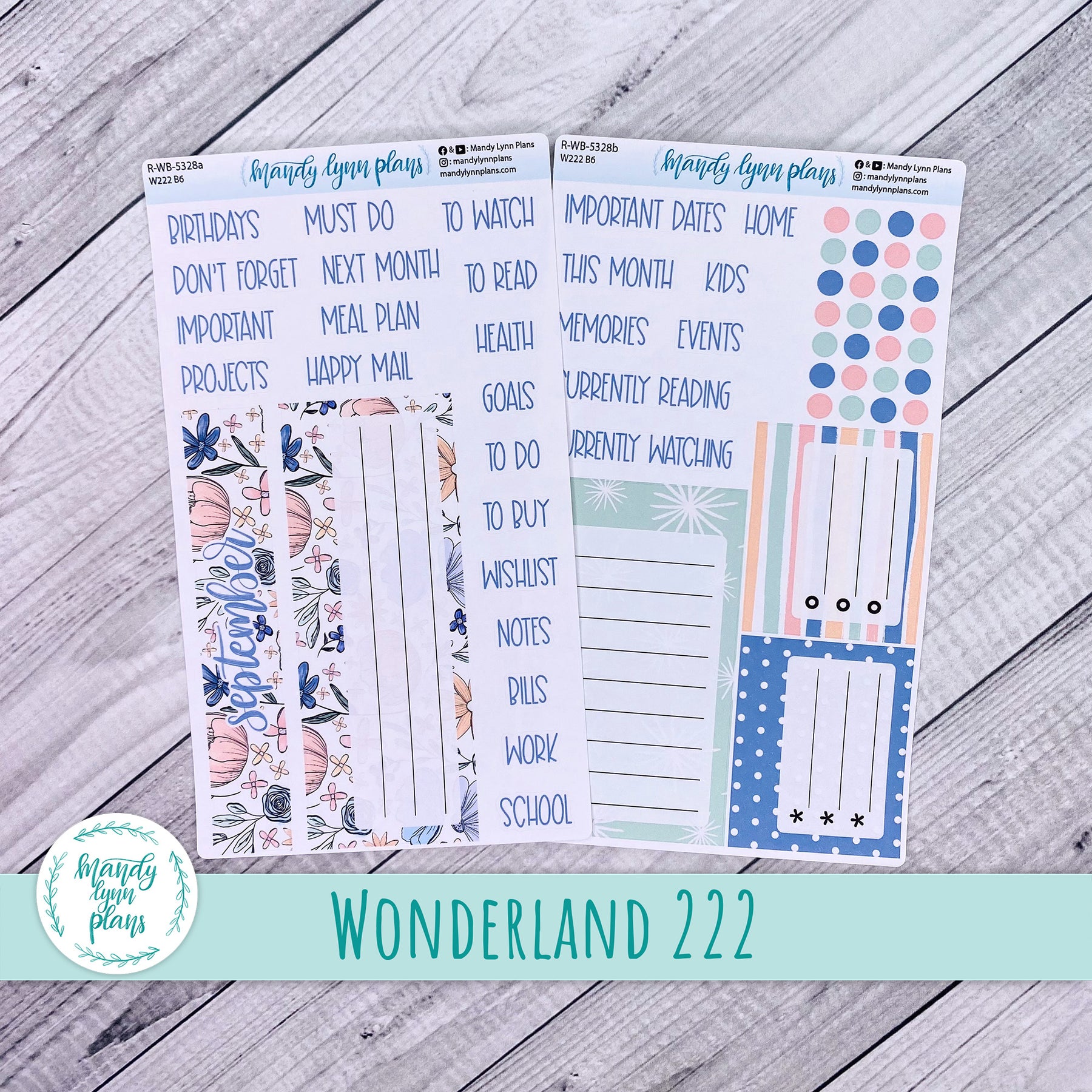 This listing is for a two page kit designed for the Wonderland 222 A5, B6 and A6 planners. It is designed for the blank page in the daily section before each month begins. It is flexible and can be used in any A5, B6, or A6 sized planner!