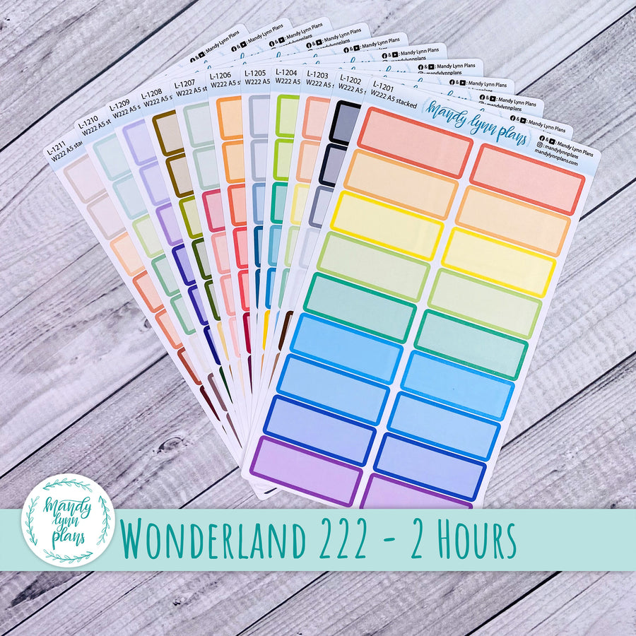 These labels are designed for use in the 2025 Wonderland 222. A5 stacked and unstacked, B6 stacked and unstacked, and A6 stacked sizes are available. They fit nicely in the two hour time slot if you are using the pre-printed timeline in the weekly view.