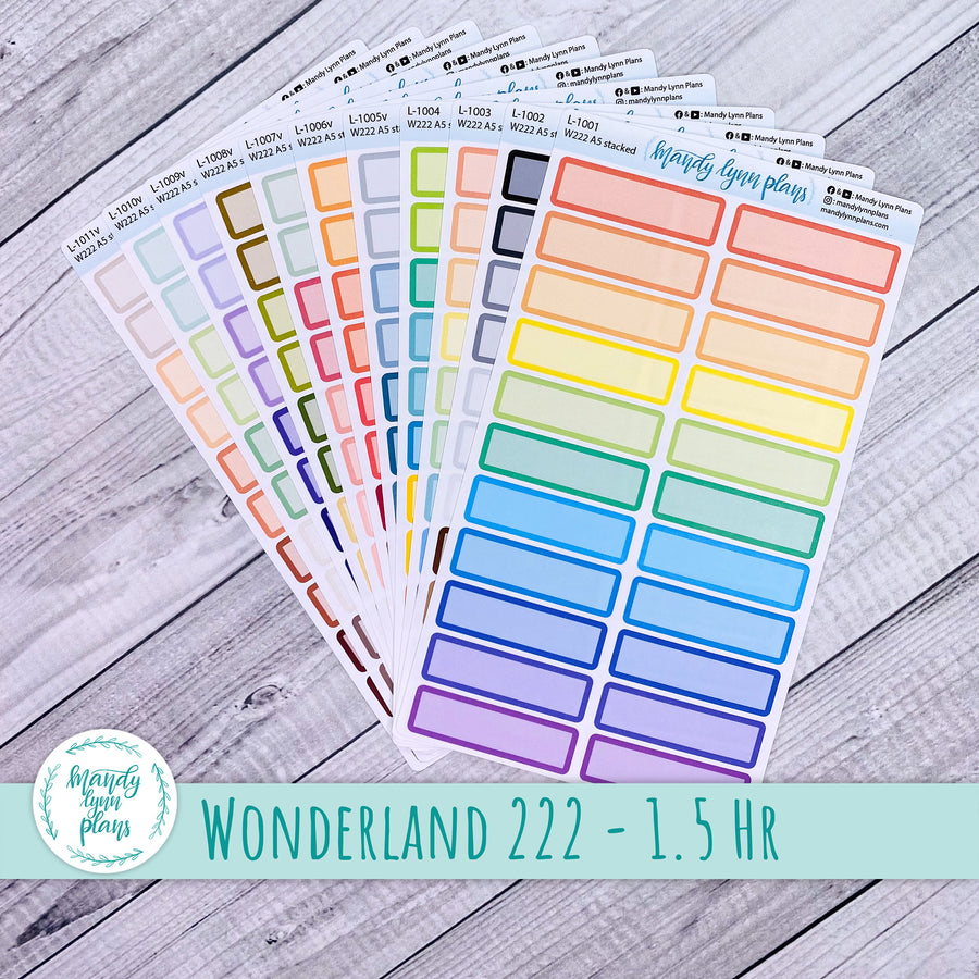 These labels are designed for use in the Wonderland 222. Both Stacked and Unstacked A5 & B6 sizes are available. They fit nicely in the one and a half hour time slot if you are using the pre-printed timeline in the weekly view.