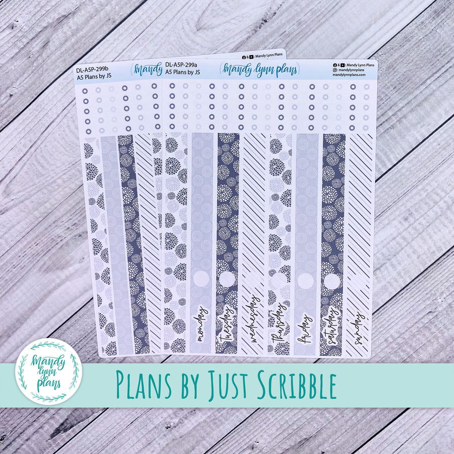 This kit includes 2 pages of stickers: 7 date covers and 7 large washi strips for the bottom of the page. Sheets also include dots and checklists. This kit is designed for the Hobonichi Cousin, but can be used in the Wonderland 222, Common Planner, or other A5 daily planner.