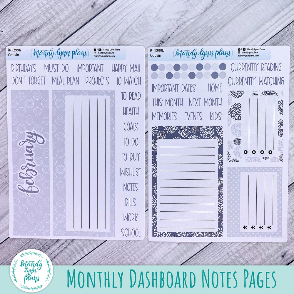 This listing is for a two page kit designed for the Hobonichi A5 Cousin. It is designed for the blank page in the daily section before each month begins. It is flexible and can be used in any A5 sized planner!