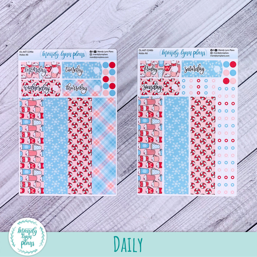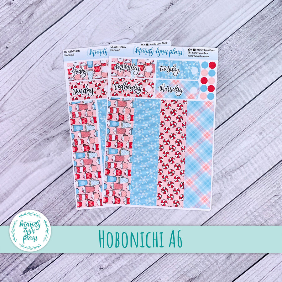 This kit include 2 pages of removable matte stickers: 7 daily page covers for the Hobonichi A6 planner and 7 matching thin washi pieces.