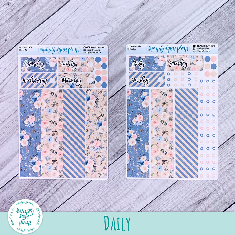 This kit include 2 pages of removable matte stickers: 7 daily page covers for the Hobonichi A6 planner and 7 matching thin washi pieces.