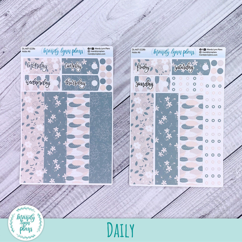 This kit include 2 pages of removable matte stickers: 7 daily page covers for the Hobonichi A6 planner and 7 matching thin washi pieces.