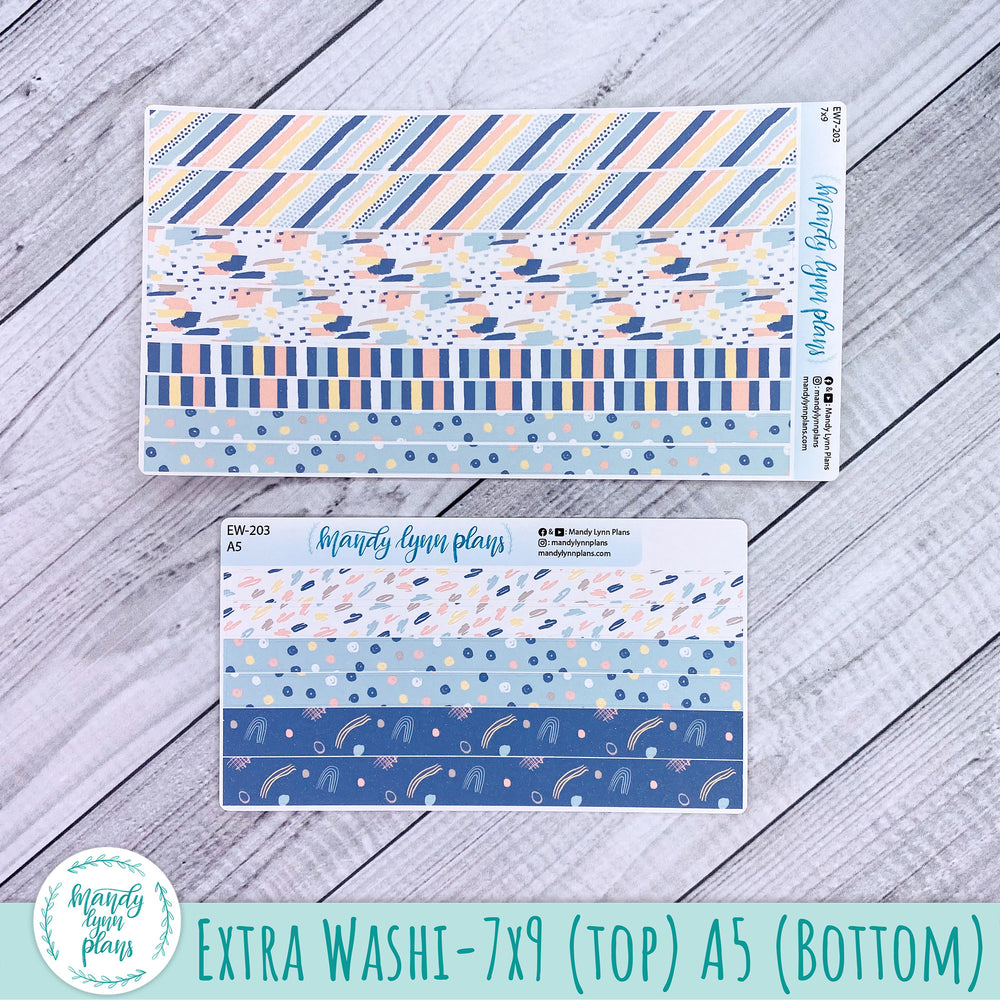Each sticker sheet is printed on removable matte sticker paper unless a choice of clear matte is given. **Please note, the updated Wonderland 222 A5 size is wider than the length of our A5 washi strips. If you are purchasing for that planner, please consider purchasing the 7x9 strips so they are long enough to fit the whole page.