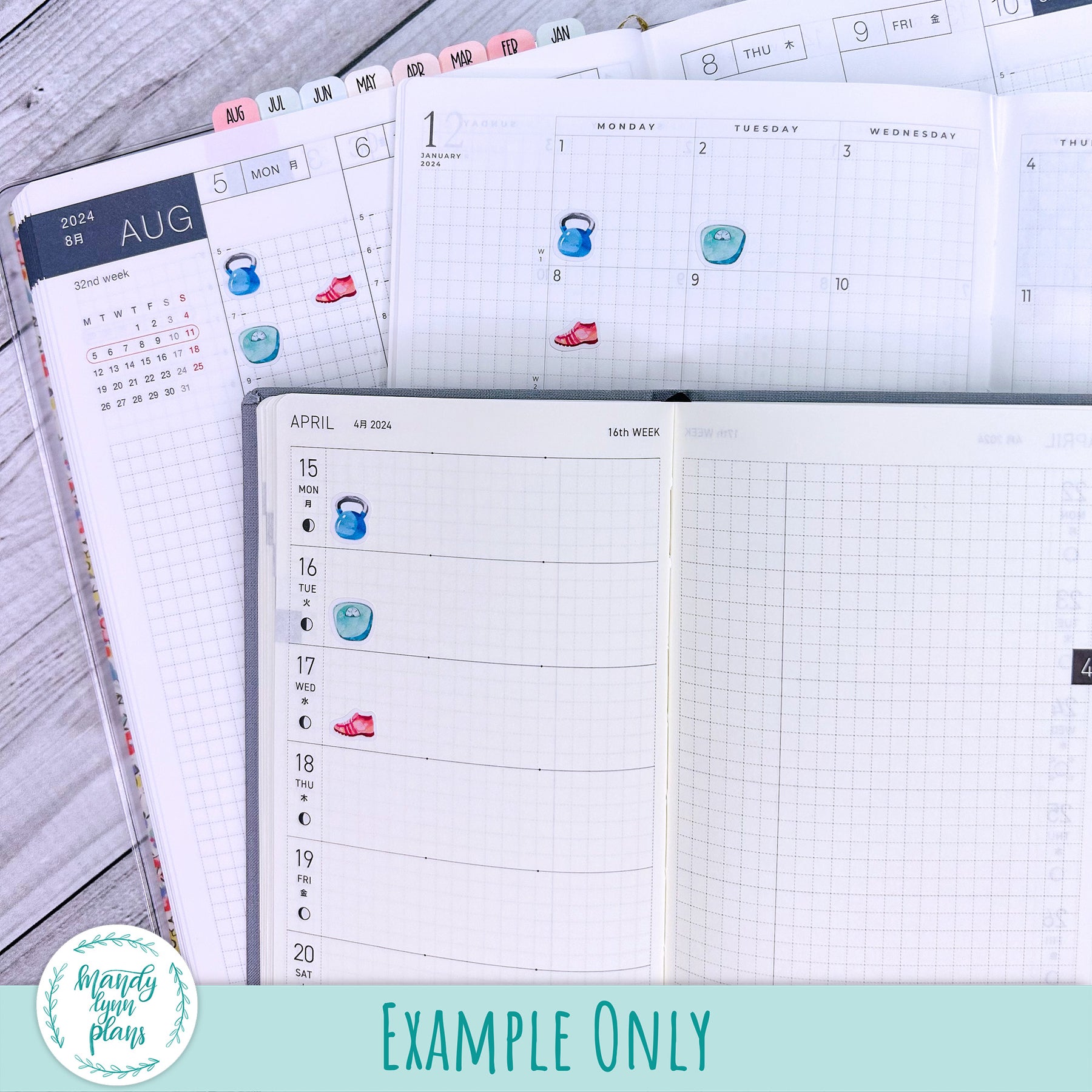 This listing is for one sheet of exercise stickers! These can be used in any planner, bullet journal, or calendar!  Swipe to see the example pictures in several planners.  A5 Hobonichi Cousin, B6 Common Planner and Hobonichi Weeks.